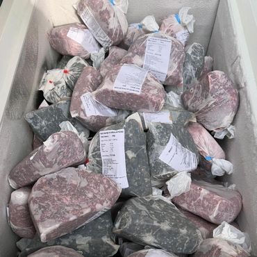 Our Meats are Raw Complete 80/10/10 (80% meat muscle/ 10% organs/ 10% bone). They are 900g Blocks.