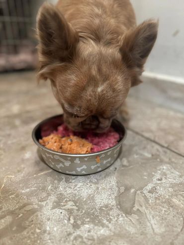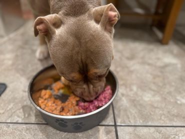 We are Raw Food advocates, and all of our dogs/ puppies are fed/weaned on Raw Food.